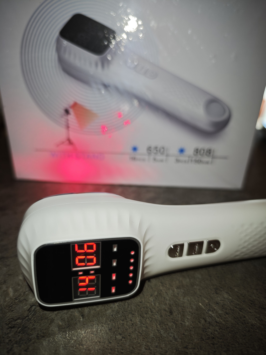 - Optimális választás a wellness számára: 650 nm-es és 808 nm-es kézi vörös fényterápia a test számára; A 650 nm-es vörös fény elősegíti a vérkeringést, a 808 nm-es közeli infravörös fény a legmélyebbre hatolva enyhíti az ízületi és izomfájdalmakat.